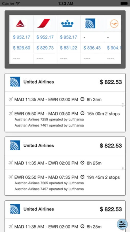 - Filter by price, duration, number of stops, preferred airline or departure & arrival time