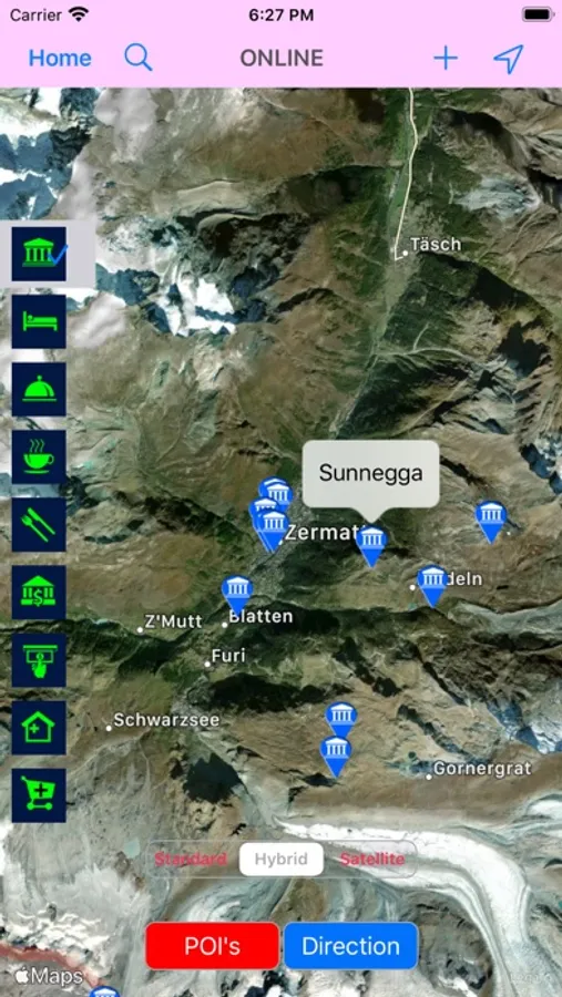 Zermatt map comes in very handy as your companion while traveling. From finding directions between source and destination points and hassle free driving, Search your nearby point of interests, Find hotels, restaurants, bars, cafes, fast food points, museums, art galleries, movie theatre, parks, monuments or any attraction or place.