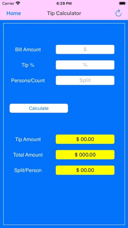 Handy tip calculator to share on spends at restaurant or shopping places.