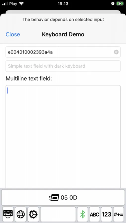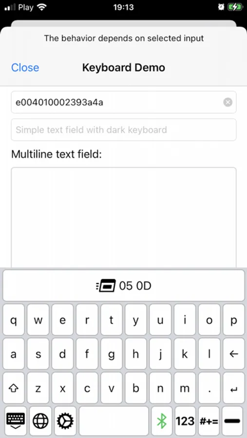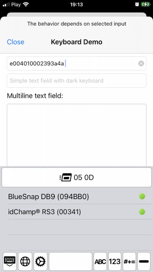 For example use BLE and MFi devices like idChamp® RFID & NFC readers like NF4, RS4, RS3, 1862, 1128, Allflex RS420, LPR, GPR+ Livestock & readers and countless other models with ALL iOS apps that take typed input, e.g. FileMaker Go.