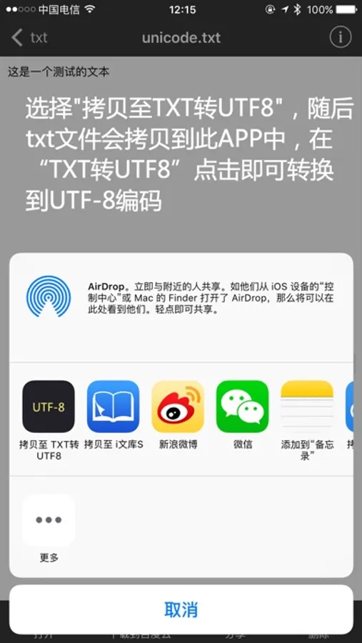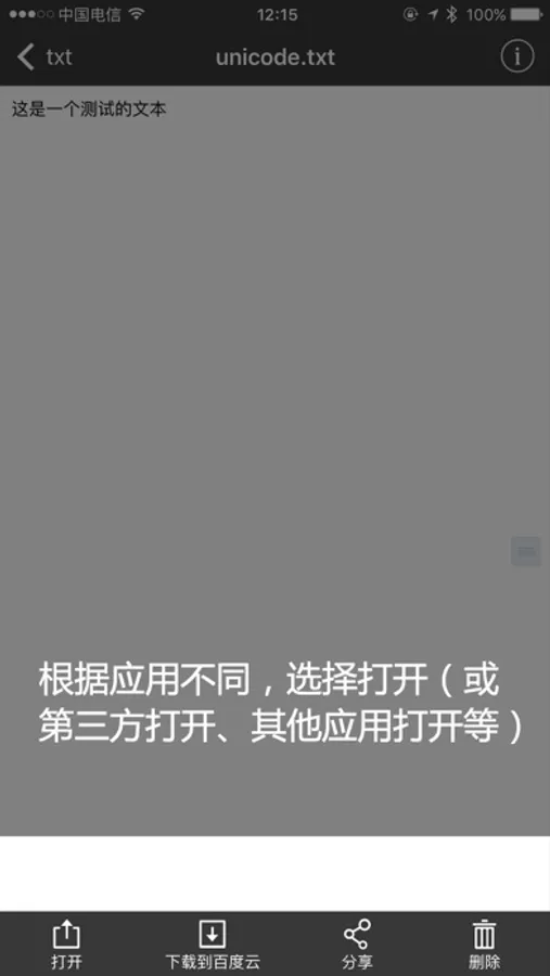 - 可以在微信、百度云、邮箱等应用中用“其他软件打开”,选择本程序打开txt文件
