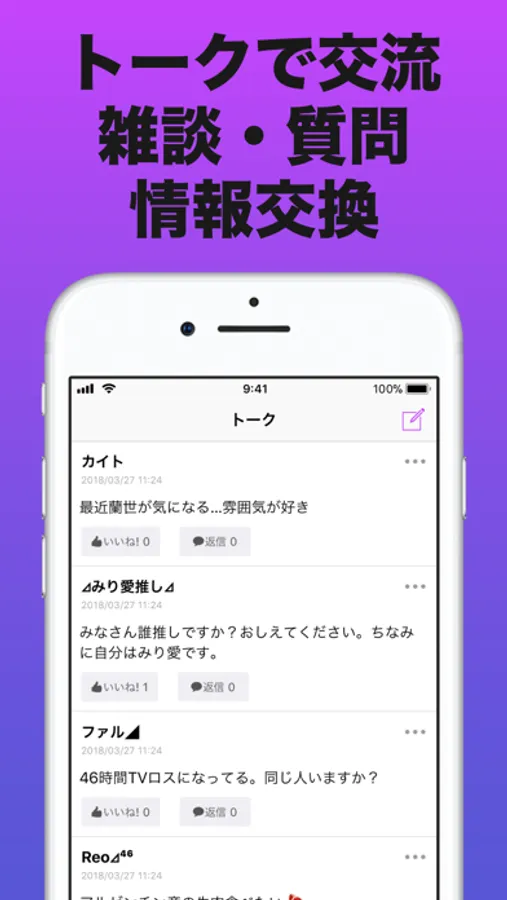 トーク機能で乃木坂46ファン同士の交流ができます。