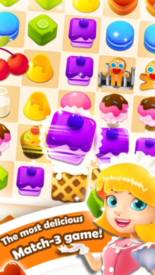 Cake Crush Mania is a “Match 3” puzzles! Swap and match many sweets to gain points.