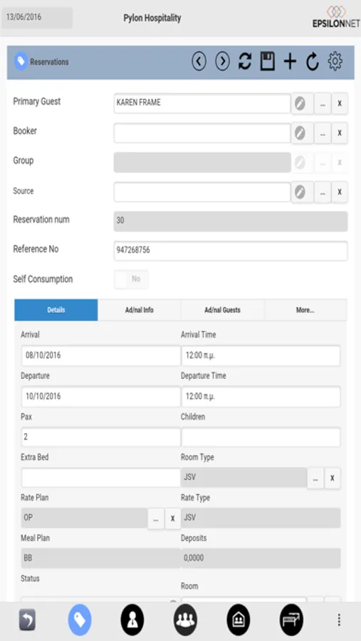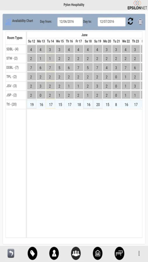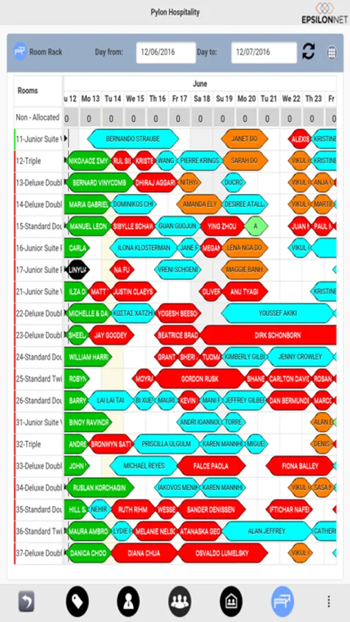Η εφαρμογή Pylon HTL διαχειρίζεται δωμάτια, πελάτες και κρατήσεις.