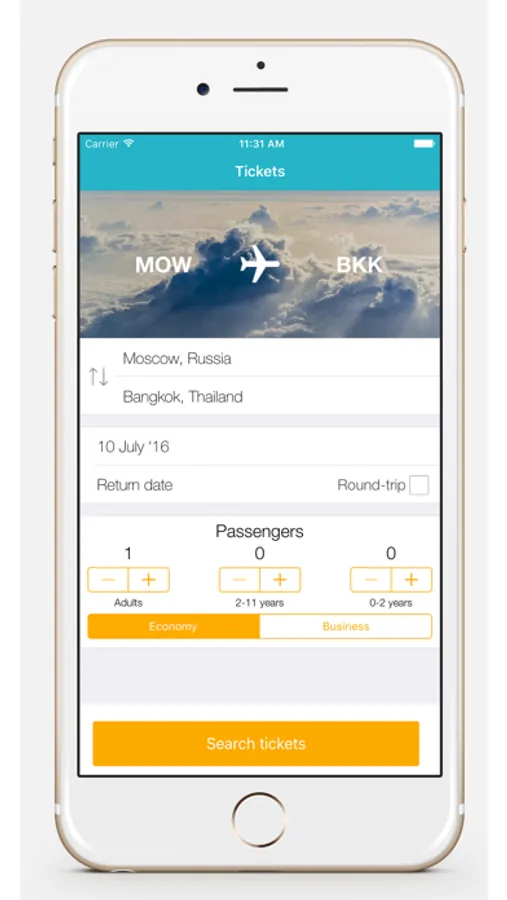 Cheap Flights app from Aviaseller.su allows you to find the lowest possible price a plane ticket from point A to point B.