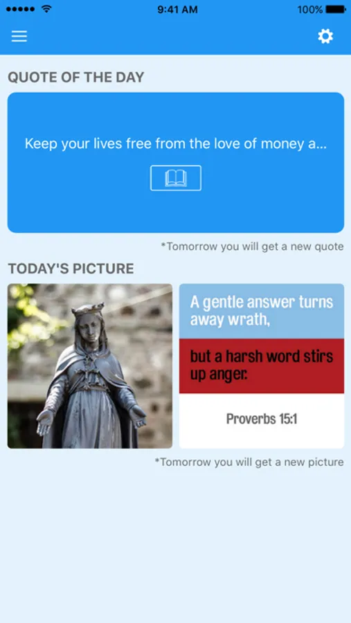 Daily Holy Bible Verses will give one Bible quote daily in the morning. Next morning you will get another Bible verses specially chosen for you. Our idea is to motivate you though one Holy Bible Verses daily in the morning, which can help you to achieve more in your life and in your daily activities.