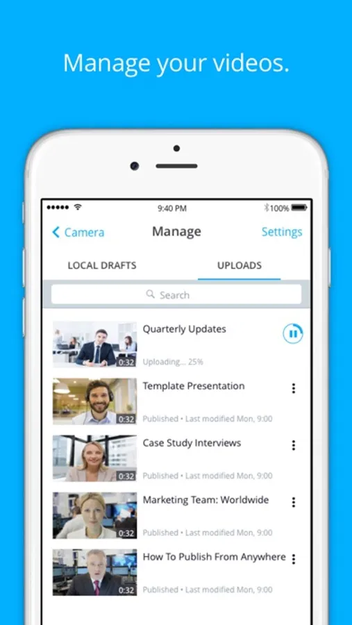- automatically upload and publish new or existing videos to Qumu Cloud