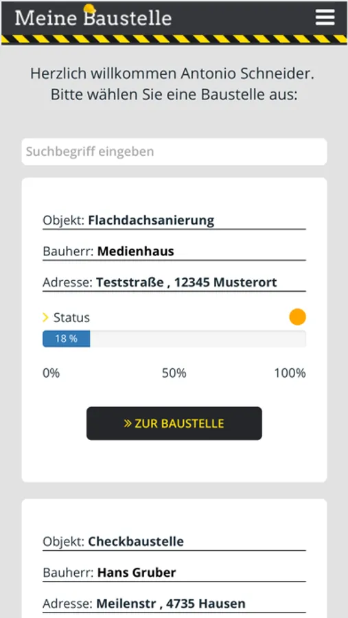 Die App bietet die Möglichkeit, Baustellen einzupflegen und stellt eine digitale Unterstützung bei der