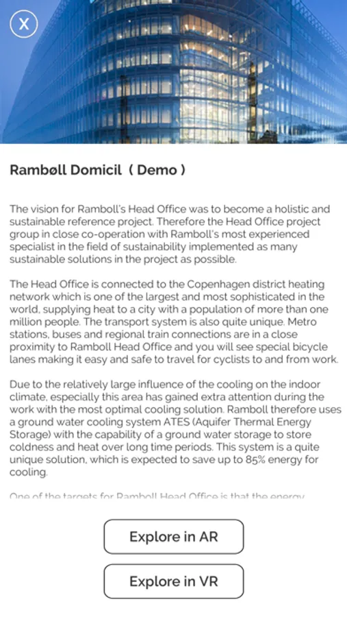 Furthermore, VR enabled content makes it possible for the user to experience a virtual tour of the building from a first person perspective. A stereoscopic rendering feature can be used with Google Cardboard headsets for an immersive experience.