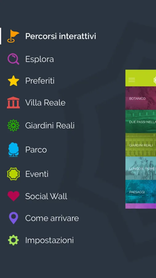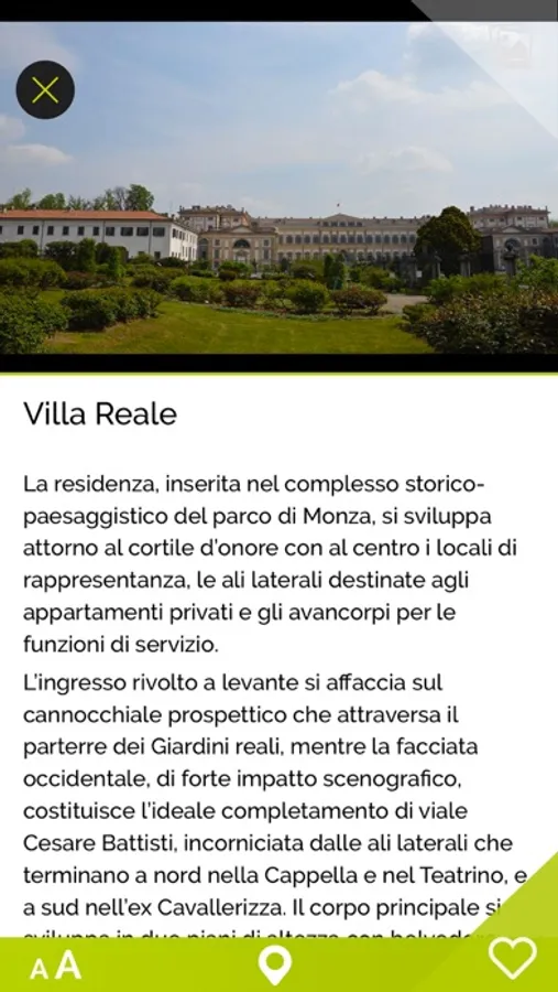 - schede di approfondimento ricche di foto e informazioni in merito alla storia della Villa Reale, del Parco e dei Giardini Reali;