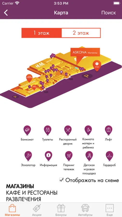 — Легко ориентироваться по торгово-развлекательному центру благодаря удобной схеме в приложении