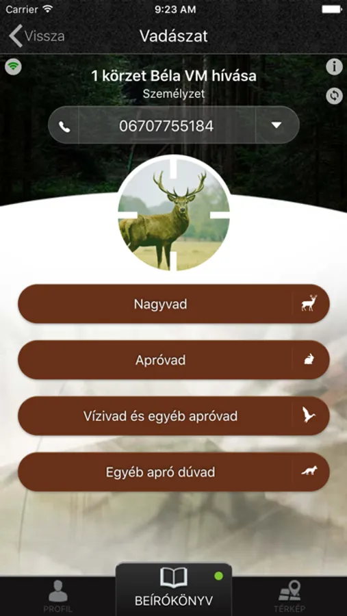 - Vadászat megkezdésekor és befejezésekor sem kell a beírókönyvhöz menni, hiszen a beírókönyv ott van a telefonodon.