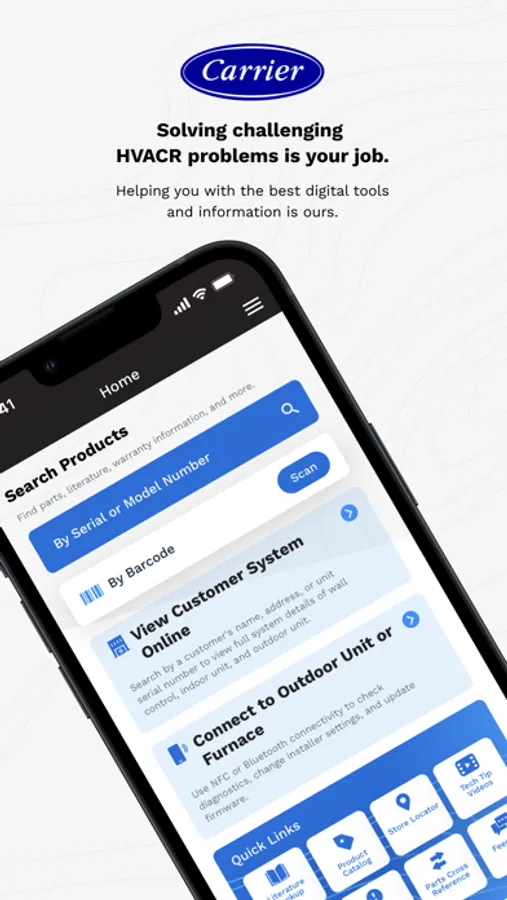 Solving challenging HVAC/R problems is your job. Helping you get the right parts, supplies and equipment you need is ours. Whether it is for warranty repairs for Carrier Equipment or for non-warranty repairs on any make or any brand of equipment, the Carrier Service Technician app can help identify the right part.