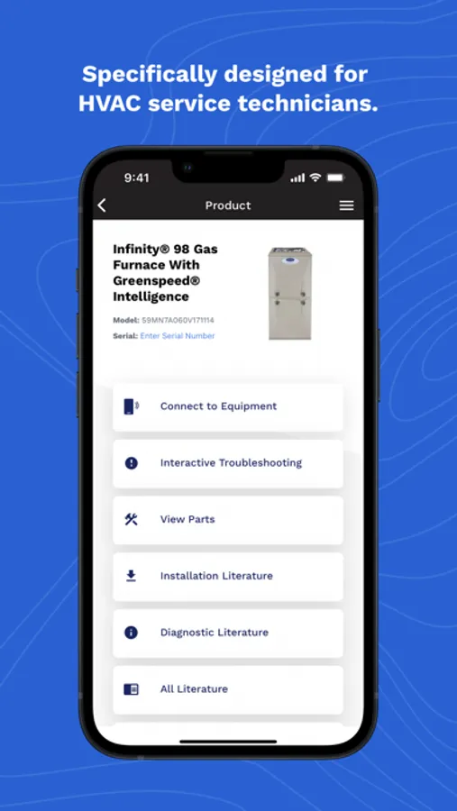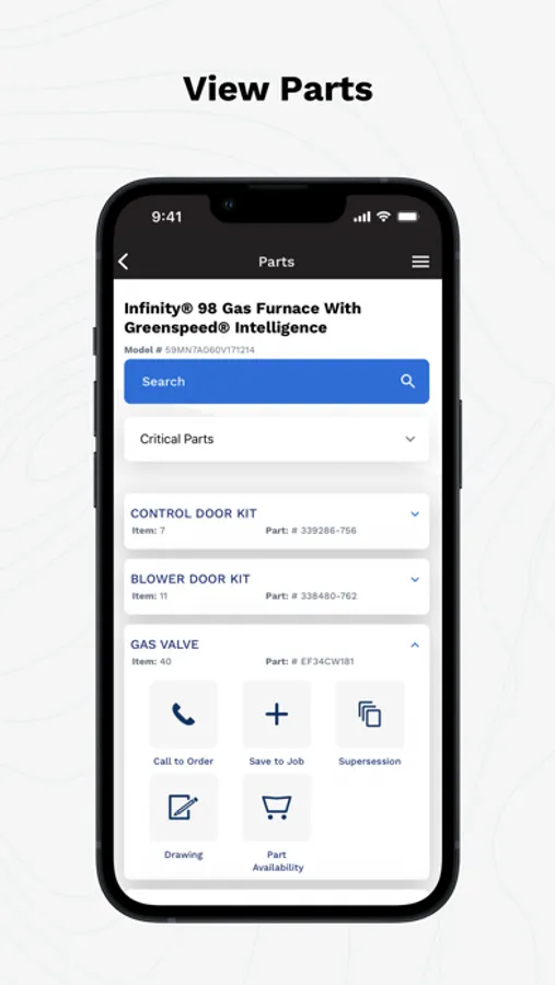 The Carrier Service Technician app provides an easy to use, powerful app that is designed to help the technician standing in front of a unit. The app helps them at the job site to find out what parts they need to make repairs, and it has an on-board GPS to help identify the closest location to find the parts.
