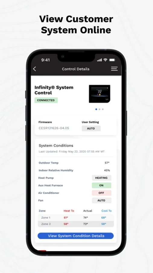 • Near Field Communication (NFC) connectivity to select installer settings, pull diagnostic information, and assist replacement of service boards on compatible equipment.
