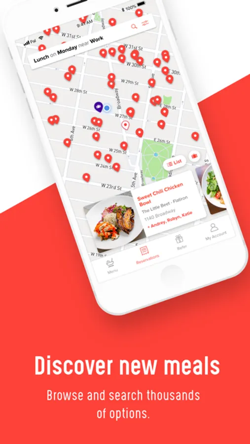 Discover new restaurants and select your weekday lunch (or dinner) with easy-to-use filters and a hyper-local map.