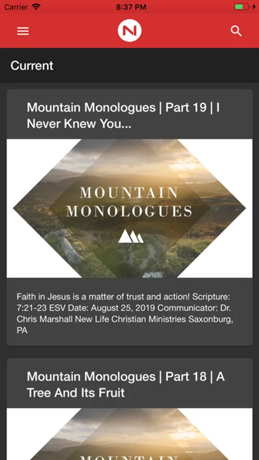 App for viewing Videos of New Life Christian Ministries in Saxonburg, PA