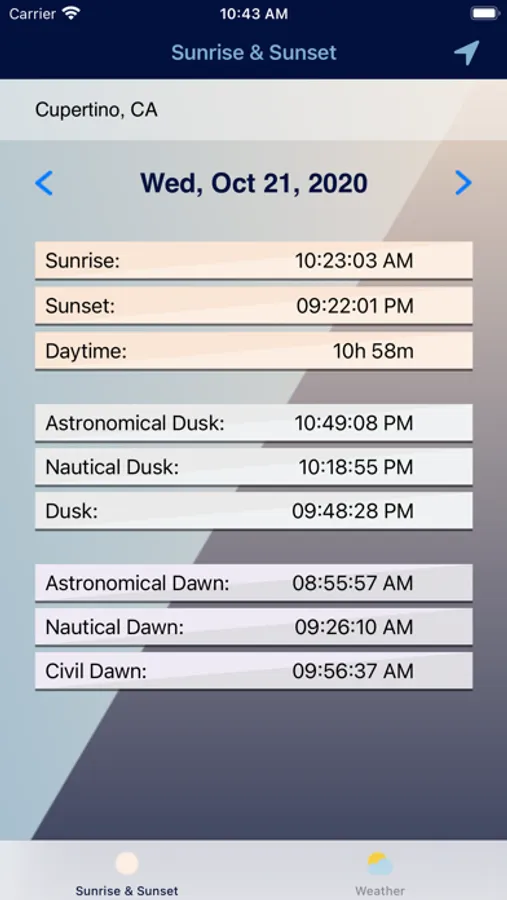 Find out what time the sun rises and sets. As well as the times for dawn and dusk. Simple app that is useful when out hunting.