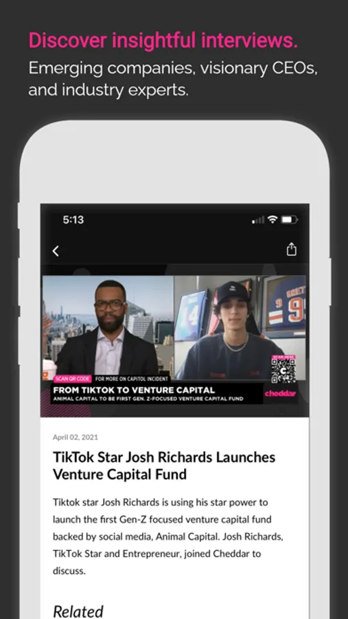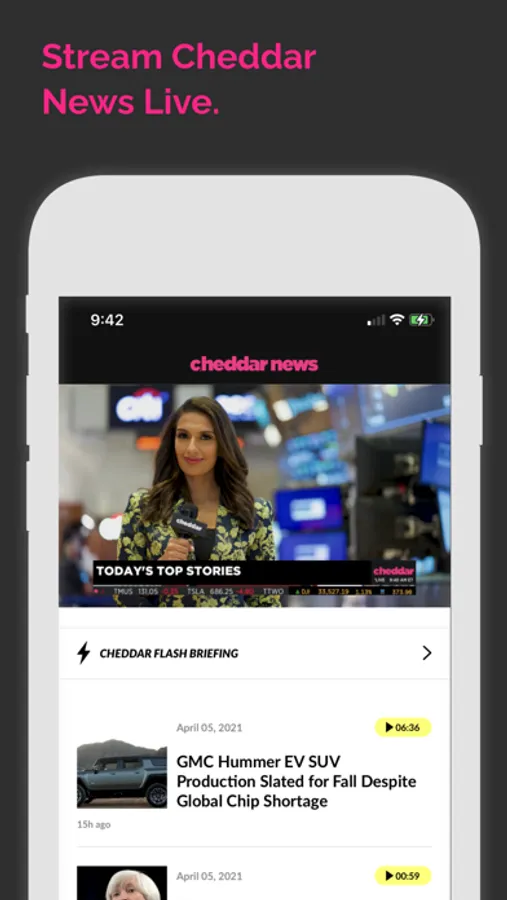 Cheddar gives you access to all the quick updates on trending news stories in business, politics, tech, markets and culture you could want.