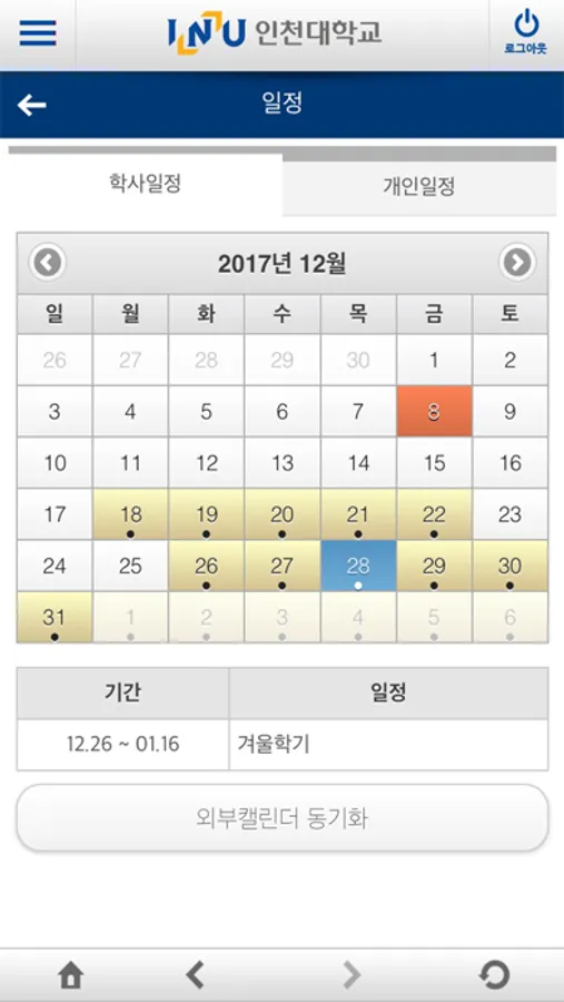 인천대학교 공식 앱 스마트캠퍼스 입니다.