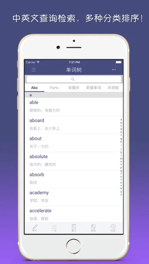 科学的单元分划可以让您循序渐进、轻松地记住单词;