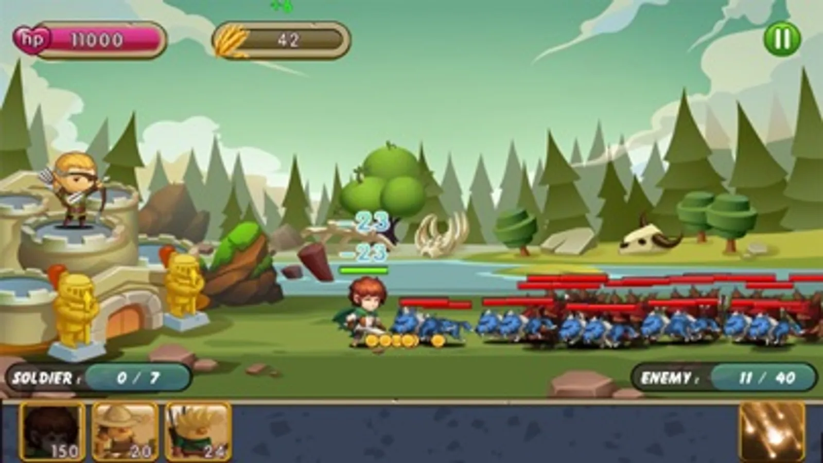 Start your adventure with a hobbit swordsman. You have to protect your kingdom against the aggression. Build your army and upgrade them to ready for each battle.