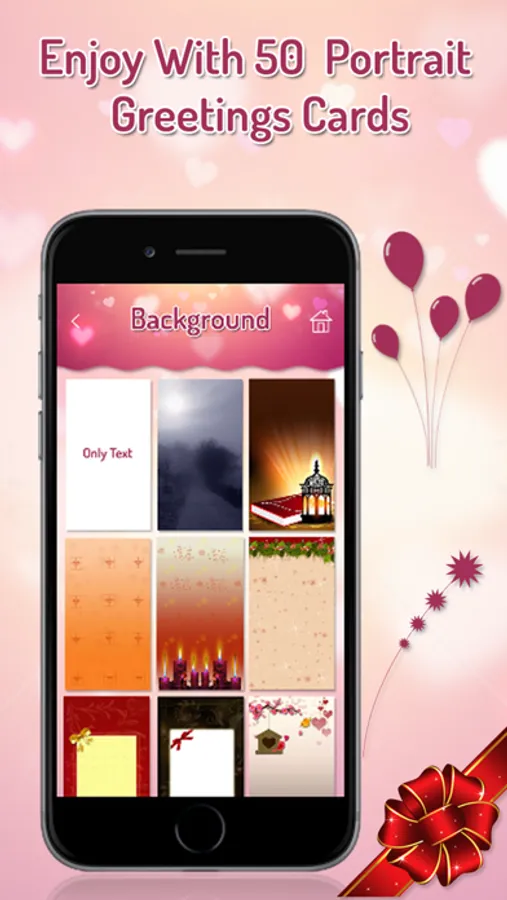3) Select background card from 50 existing cards or upload from gallery or camera.