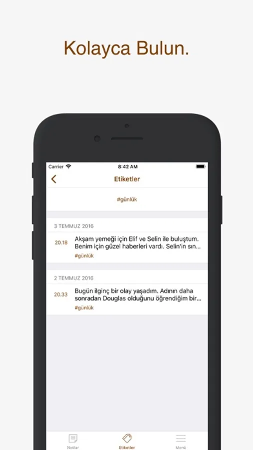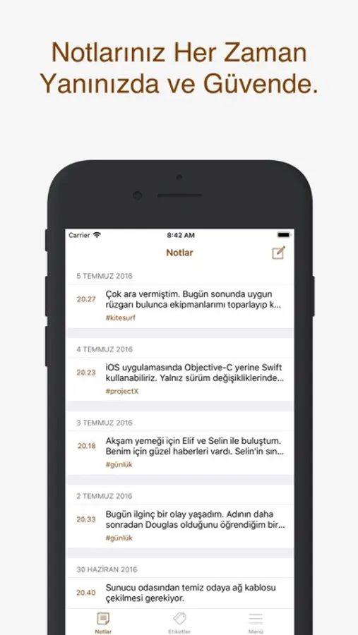 Notes app; is a great way to save your ideas and memories quickly. It parses the notes you took by days and keeps your personal diary on a regular basis for you.