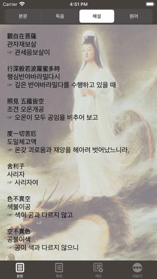 이러한 반야심경을 아이폰에 담아 항상 지니고 틈틈이 그 뜻을 살펴보십시오. 반야심경은 분명 여러분의 마음에 밝은 빛을 비춰 줄 것입니다.