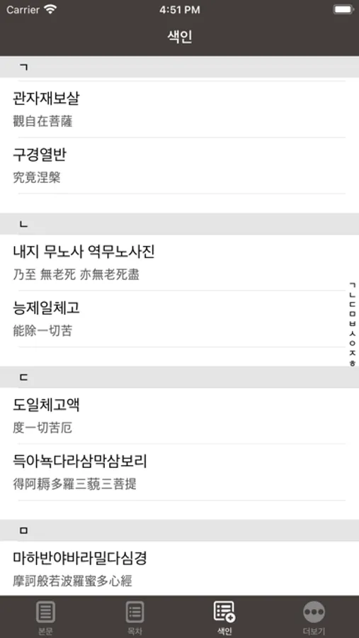 • 색인에서 한 음절을 선택하면 상세한 해설을 볼 수 있습니다.