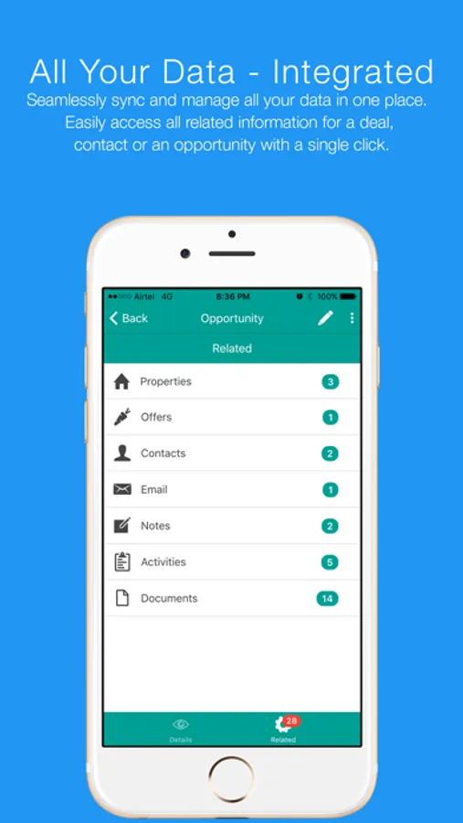 -Increase productivity and revenue. Sales reps have ready access to key customer data at their finger tip – be it opportunity, contact, company, activities, notes & more.