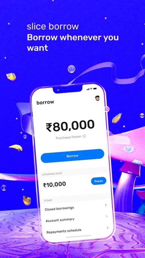 An all-new way to access credit through slice borrow. You can just enter the amount, and transfer the money instantly to your bank account.