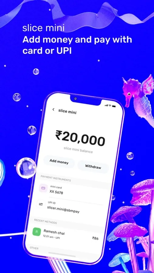 The slice card is directly linked to your slice mini account. You can enjoy upto 2% cashback on each card transaction, and get instant cashback with slice spark. You can link your mini account to slice UPI to make secure pin-free payments.