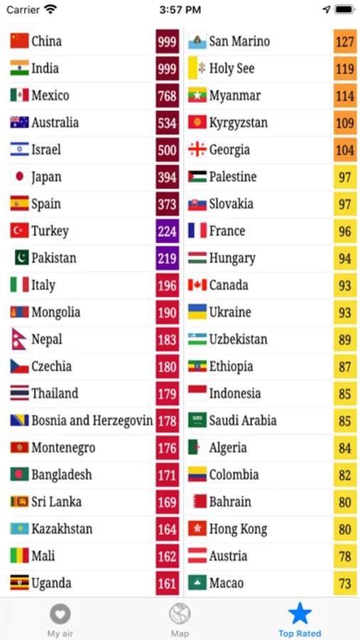 - Brown: AQI 300+ Hazardous Health alert: everyone may experience more serious health effects