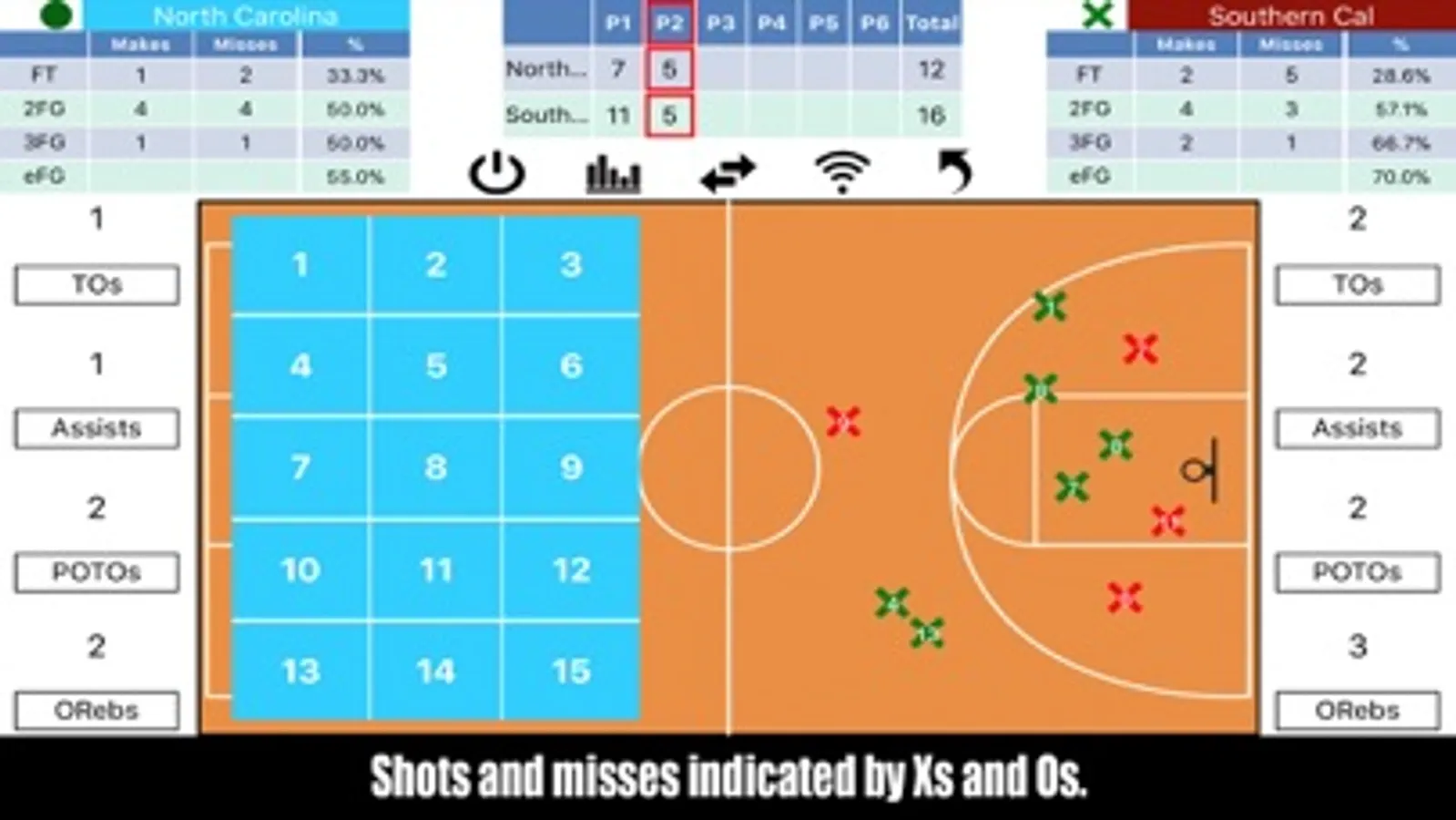 - Option to track shot charts by player numbers, which adds numbers on top of the Xs and Os.