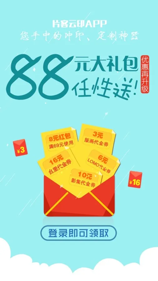 片客云印,是一款照片冲印、个性印品定制APP。为百度网盘、电信天翼云盘提供云冲印技术服务,还是中国联通和孩子王·成长加母婴平台合作伙伴,连续四年中国印刷电商品牌20强,专业二十年,品质保障。小照片,大创意,片客云印和你一起,发挥想象,让照片成画、成册,定格美好,装点生活!
