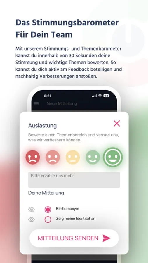 The CompanyMood Tracker App enables you to use CompanyMood with your iPhone. Submit your mood review from everywhere and help your company to find out how to improve employee satisfaction.