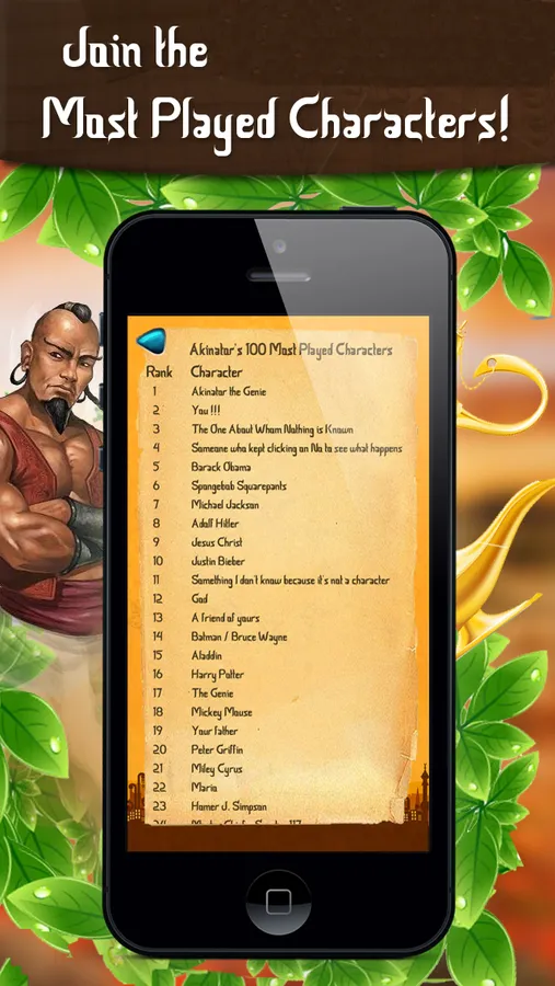 Now you have the opportunity to get in touch with Akinatorís 100 Most Played Characters!