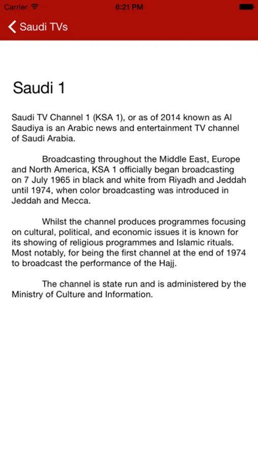 Saudi TVs is an application that allows you to have information on main Saudi Arabia television stations.