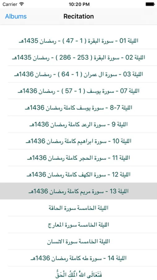 Basically, it contains a list of reciters or Qari sorted in albums with their Quran recitations that were recorded during Ramadan (Traweeh prayer) or any other day during prayer.