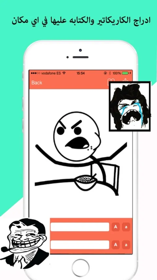 يعطيك التطبيق المرونه في اختيار الكاريكاتير المناسب من ضمن مجموعه كبيره من الكاريكاتيرات الجاهزه ويمكنك كتابة اي تعليق على الكاريكاتير وارساله الى اصدقائك ومشاركته عبر الفيس بوك او الانستقرام او التويتر.