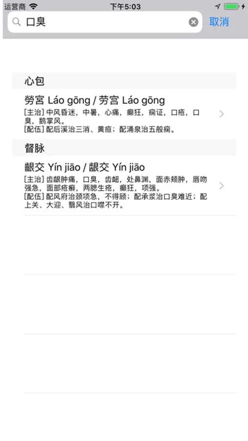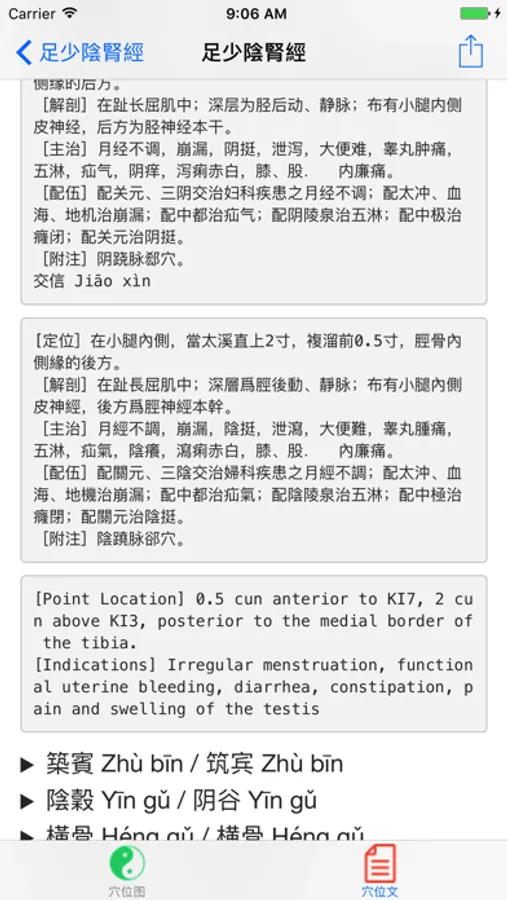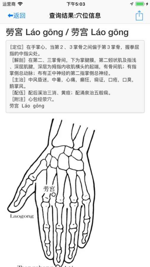 2.选择穴位列表中穴位,查看穴位图,及信息。
