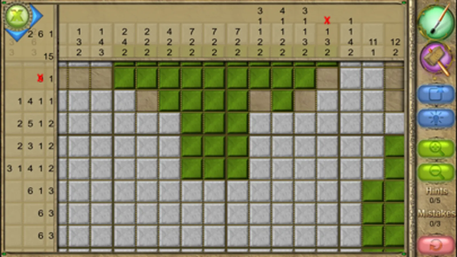 An old Japanese logic puzzle takes on a new look with FlipPix Jigsaw! Touch tiles to paint them or break them to form colorful images. The goal is to use logic to determine which tiles should be filled to reveal a hidden picture.