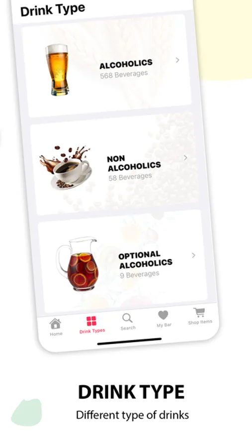 + Get different types of alcoholic, non-alcoholic, and optional alcoholic drink recipes
