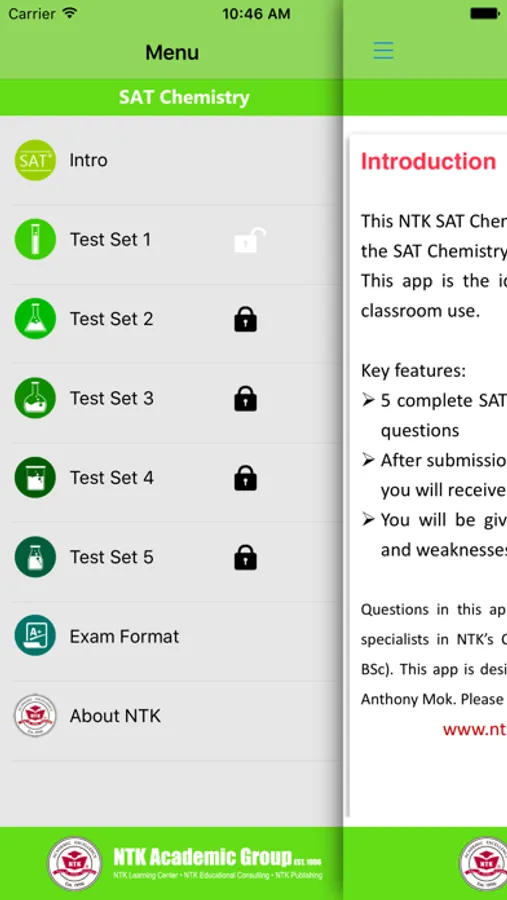 This NTK SAT Chemistry app is designed for students taking the SAT Chemistry examination offered by College Board. This app is an ideal resource for self-study and revision.