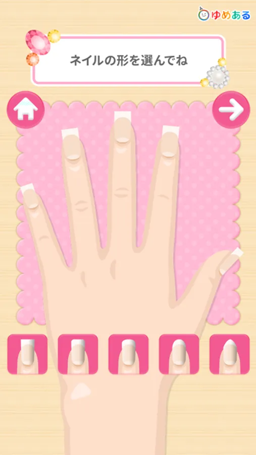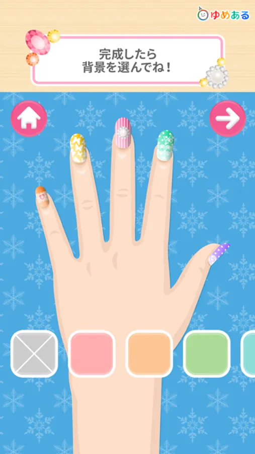 ネイルの形を選んだら、カラーやシール、ストーンなどでデコレーションできます。