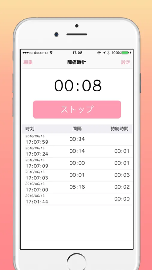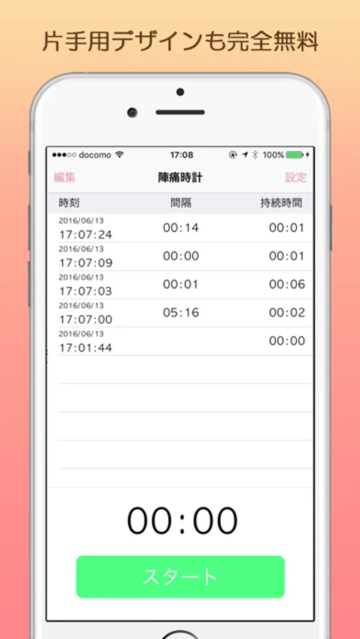 ボタンを押すだけ! 陣痛の間隔を計測・簡単記録ができます