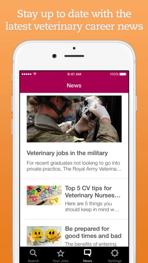 Search an extensive database of vet jobs that are updated on a constant basis. The vet times jobs app learns as you browse, meaning it will save searches that are relevant to you and suggest jobs that you’ll be interested in. Our app includes a plethora of veterinary nurse jobs and veterinary surgeon jobs alike; making it the only vet jobs app you’ll ever need as a job-hunting veterinary professional.