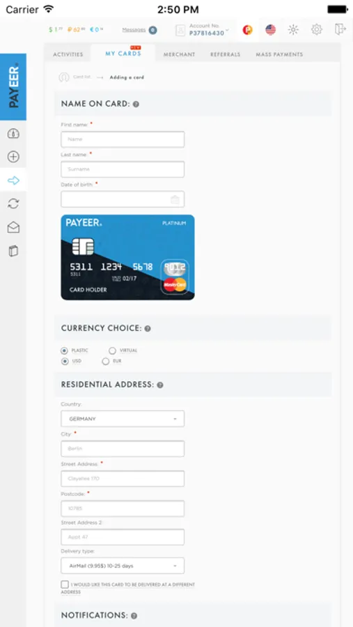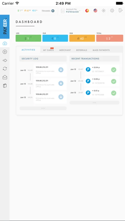 You can send transfers from your Payeer account to VISA, MasterCard, bank accounts, electronic-payment systems. Full list of systems is available after instant registration.