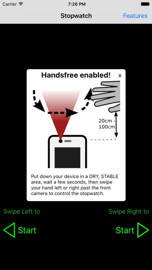 Simply put down or dock your device in a stable, dry area. You can now use left or right hand gestures in front of your phone to start, stop, or reset the stopwatch.